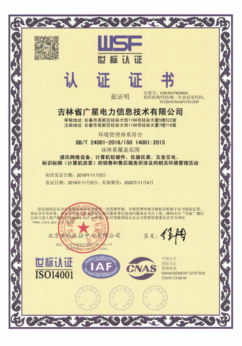 吉林省廣星智聯(lián)科技有限公司作為一家新興的通信設(shè)備集成商,取得的資質(zhì)具體包括投標(biāo)人承裝(修、試)電力設(shè)施許可證、質(zhì)量管理體系認(rèn)證證書(ISO9001)、環(huán)境管理體系認(rèn)證證書(ISO14001)、職業(yè)健康安全管理體系(OHSAS18000)、綜合運(yùn)維可視化管理系統(tǒng)證書、通信網(wǎng)絡(luò)技術(shù)服務(wù)管理系統(tǒng)證書、通信網(wǎng)絡(luò)設(shè)備檢測(cè)系統(tǒng)證書、綜合布線管理系統(tǒng)證書、通信信號(hào)檢測(cè)系統(tǒng)證書、電力線路與電力設(shè)備維保管理系統(tǒng)證書、安防設(shè)計(jì)施工一體化管理軟件證書、電力系統(tǒng)綜合服務(wù)平臺(tái)證書、設(shè)備機(jī)房標(biāo)準(zhǔn)化治理軟件證書、機(jī)房設(shè)備運(yùn)行監(jiān)控系統(tǒng)證書等。
