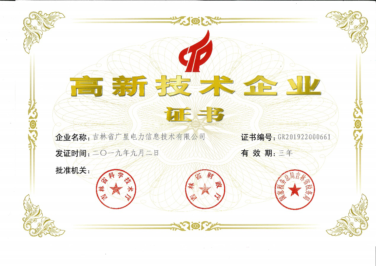 2019 年廣星智聯(lián)榮獲2019年度國(guó)家級(jí)高新技術(shù)企業(yè)認(rèn)證